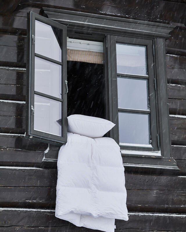 Lukten av fyr i peisen og stillheten utenfor. Gjør opplevelsen enda bedre med myke og varme produkter fra Norsk Dun.
